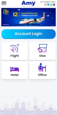 By using the "Amy" Web Platform and Mobile App, anyone can easily book any Domestic/International air ticket, hotel, umrah package, ready coworking office space, or can apply for a quick visa process using a Debit/Credit Card, bKash, Nagad, Rocket or any other mobile banking platforms.