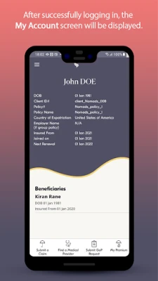 Insured Nomads members that have the health insurance plans can submit their claims, access their virtual payment card, request letters of guarantee, pay their premiums, and gain policy service.